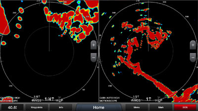 ![]() Двойной диапазон Одна радиолокационная антенна способна отображать изображения на разделенном экране вашего картплоттера рядом друг с другом, с независимой настройкой дальности и управлением как для ближнего, так и для дальнего радиуса действия. |