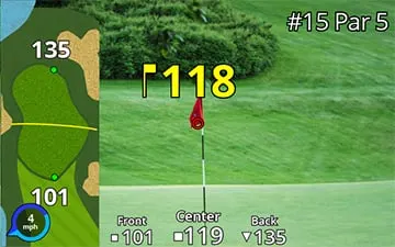 Наложения карты показывают расположение лунок, поэтому вы знаете расстояние до задней, средней и передней части грина.